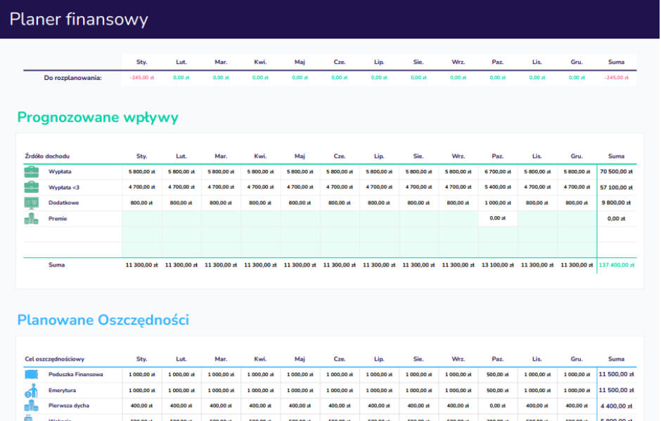Planer nie narzuca gotowego schematu, ani jednego „właściwego" budżetu. To Ty decydujesz: